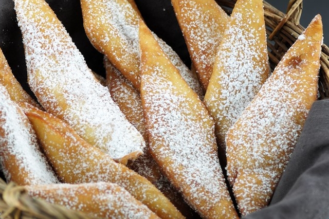 Mettre 500 grammes de farine dans une grande terrine; ajouter deux oeufs, une pincée de sel et 10 gr de levure. Verser deux décilitres de lait dans lequel on aura fait fondre 75 grammes de beurre ; mélanger et pétrir à la main. La pâte doit être un peu "mollette". La réunir en boule et la déposer dans un saladier avec un peu de farine dans le fond. Recouvrir d'un linge propre et laisser lever dans un endroit frais. Rompre, c'est-à-dire aplatir avec la paume de la main; reconstituer la boule et abaisser celle-ci sur une épaisseur de trois à quatre centimètres d'épaisseur. Détailler en rectangles de cinq centimètres sur deux. Faire frire dans de l'huile très chaude.