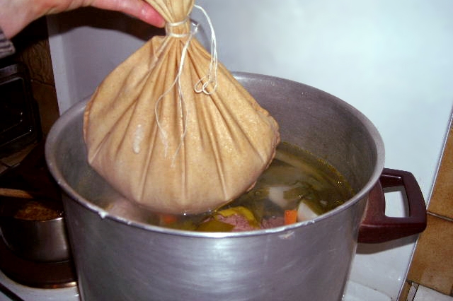 Attention de ne pas trop remplir les sacs de Farz car le farz gonfle durant la cuisson. Si vous ne possédez pas de sac à Farz, vous pouvez mettre le Farz au milieu d'un torchon en toile assez épais et vous fermez avec une ficelle bien serrée.