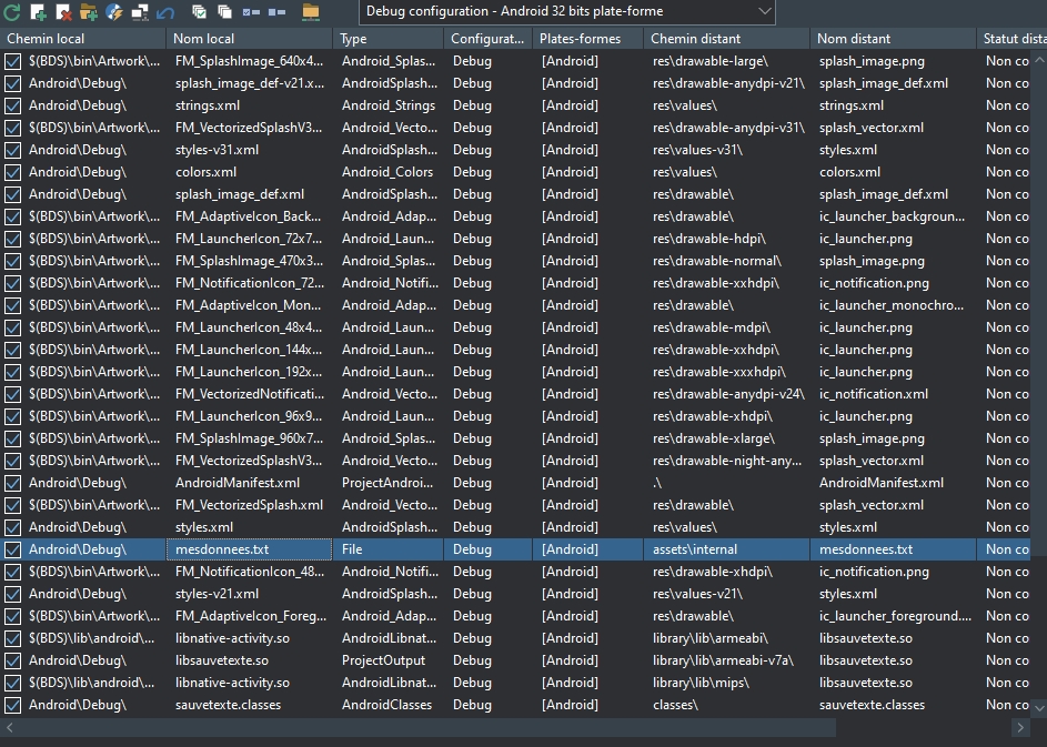 Pour placer vos fichiers dans le dossier dans votre application (interne ou externe). Sélectionner chemin distant du Gestionnaire de déploiement :