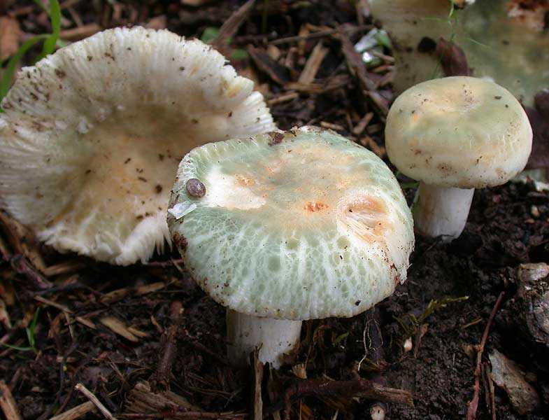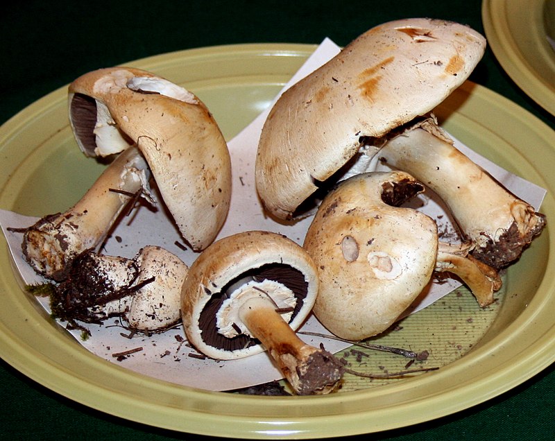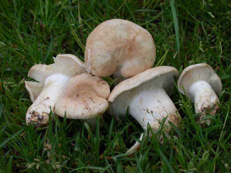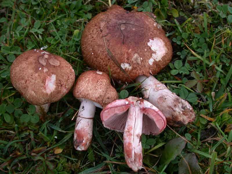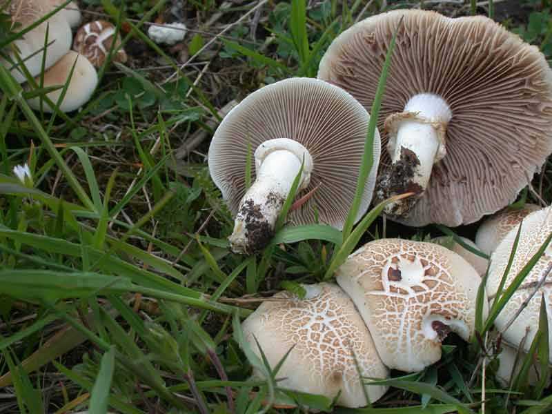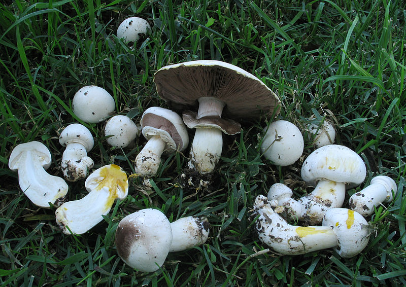 Amanites blanches, mortelles. Agaric jaunissant, toxique. |