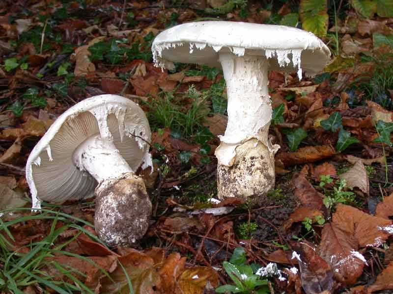 Amanites blanches, mortelles. Amanite ovoïde, var. proxima, toxique. |
