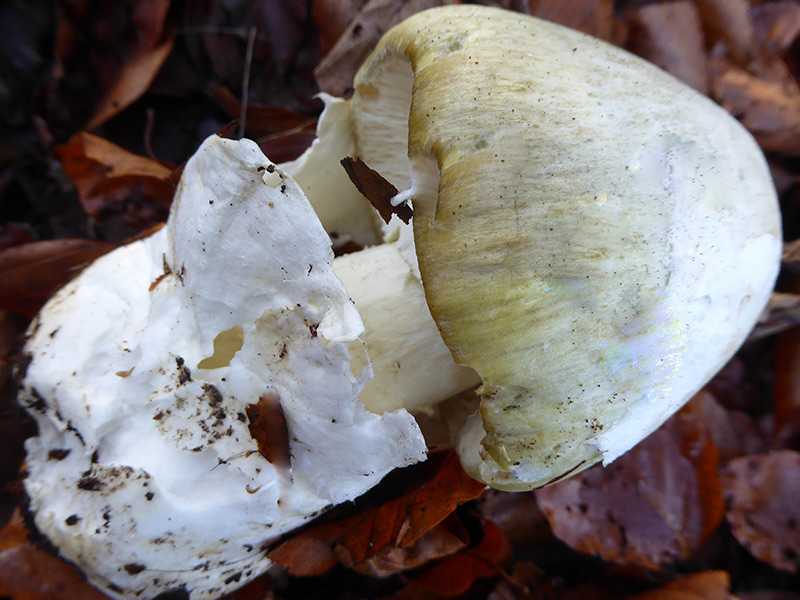 Amanite phalloïde, mortelle.<br>Amanite citrine, à rejeter. |