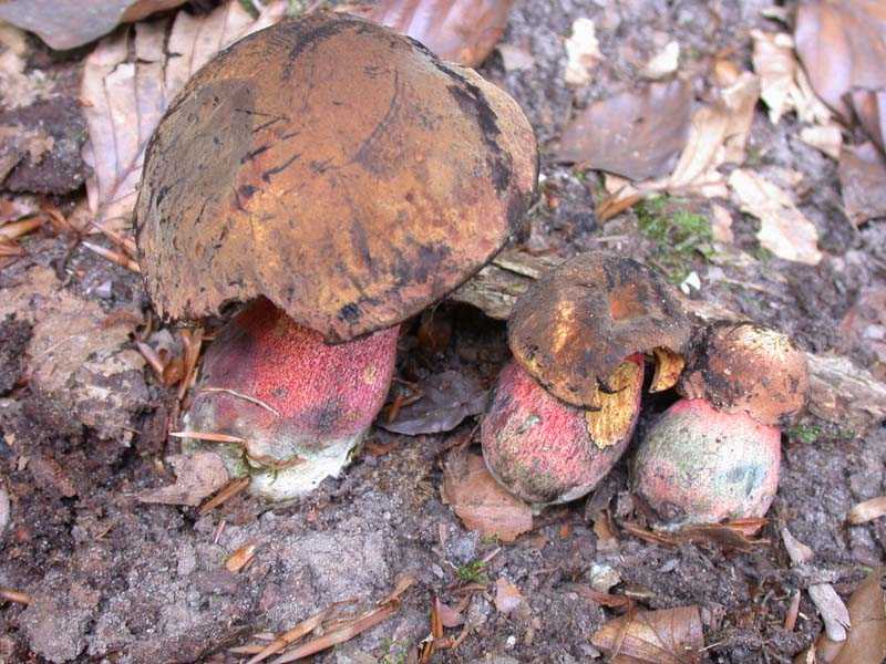 Blanchâtre, rouge vif au toucher, un peu squamuleux, bulbeux avec anneau membraneux (10-15 x 1.5-2 cm). |