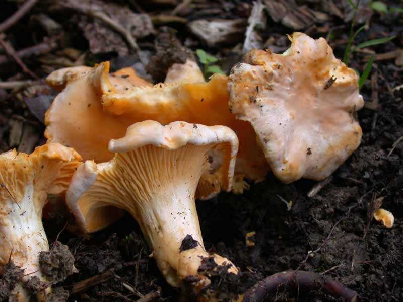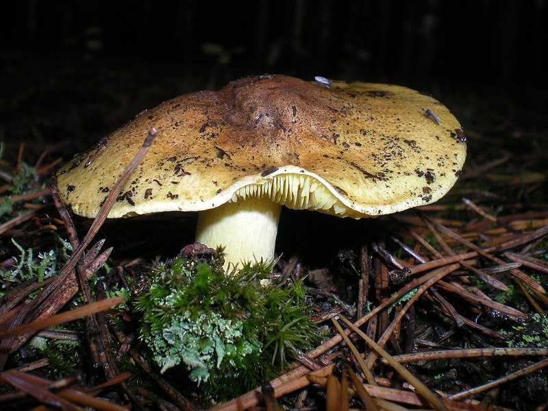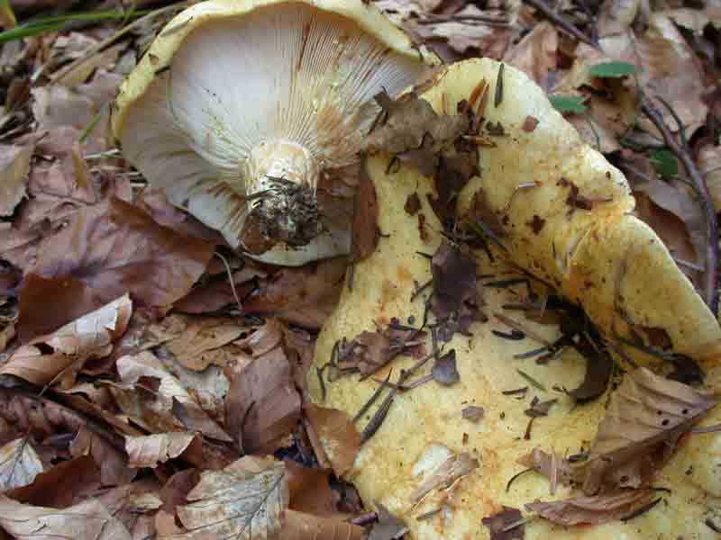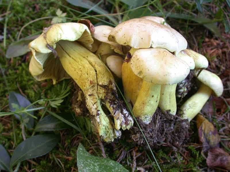 Tricholomopsis decora (entièrement jaune), comestible. |
