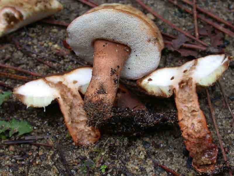 Grisâtre pâle, peu squamuleux, cylindrique (5-10 x 1-1,5 cm). |