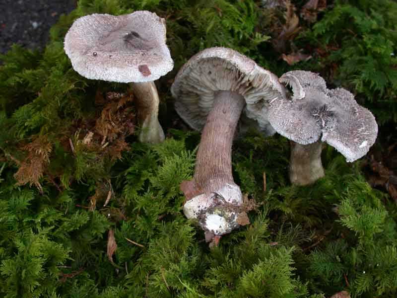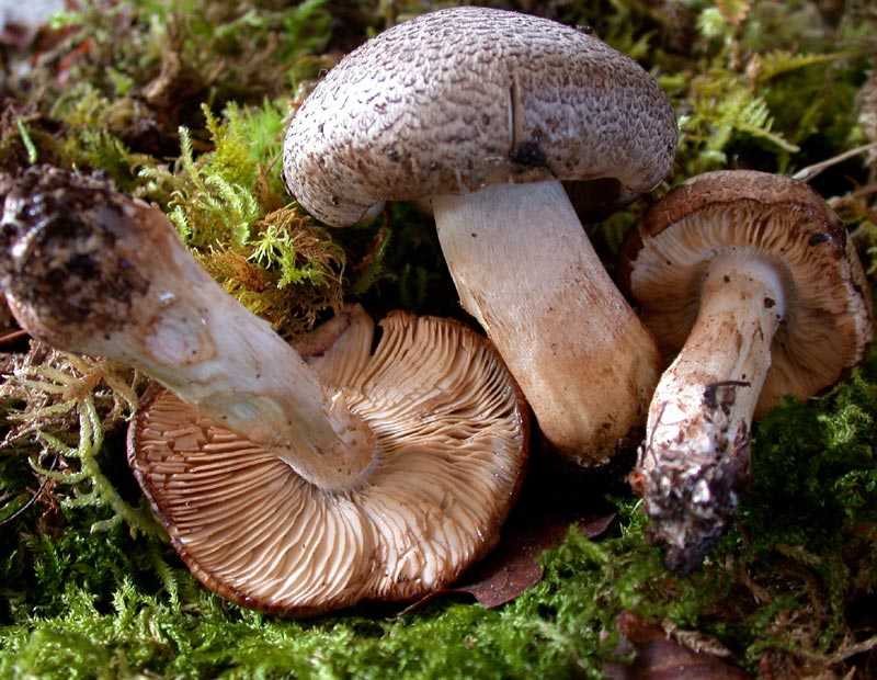 Tricholomes à chapeau gris, comestibles ou toxiques (Tricholome tigré). |