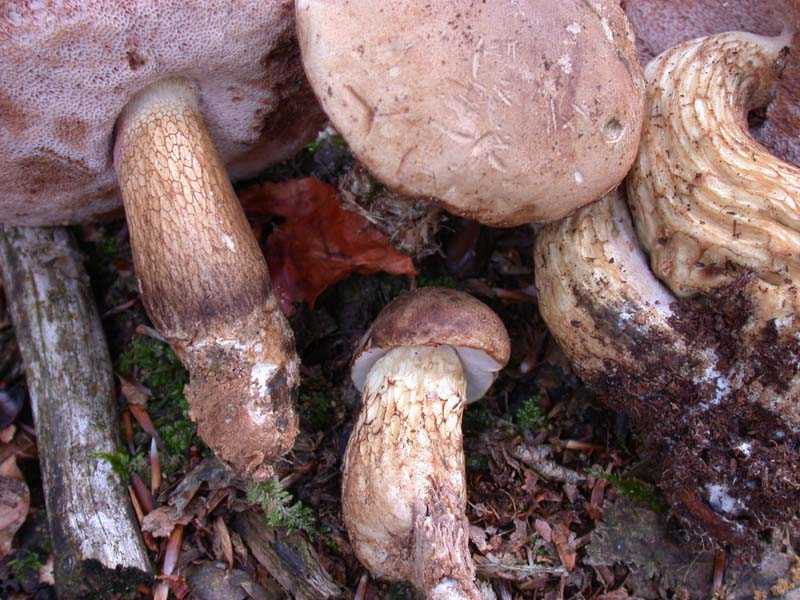 Blanc, jaunissement vif et rapide au froissement de la marge en particulier. Lisse ou rayé de grisâtre dans certaines variétés, typiquement tronconique, parfois craquelé (5-10 cm). |