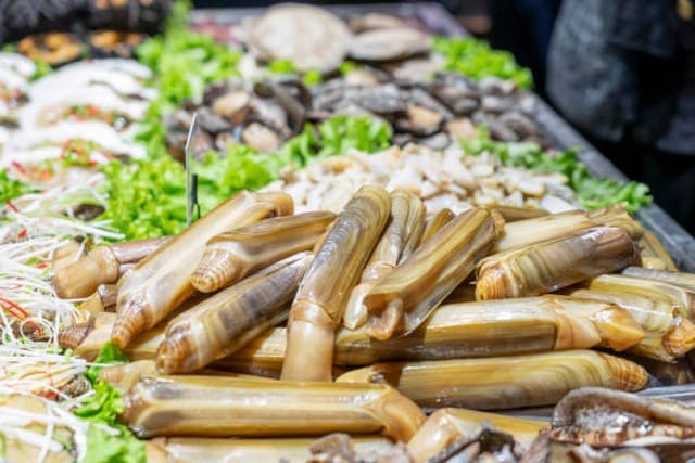 Les couteaux de Bretagne sont un peu coriaces tels quels. Faites ouvrir 20 couteaux sur le feu, retirez les chairs, lavez-les à l'eau froide pour en ôter le sable. Hachez-les finement avec 4 branches de persil, ajoutez un gros morceau de mie de pain trempée dans du vin blanc, 2 échalotes cuites au beurre. Remplissez des coquilles vides de Saint-Jacques beurrées avec ce hachis. Parsemez de noisettes de beurre. Faites gratiner.