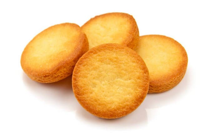 600 g de farine, 300 g de sucre en poudre, 1 dl de crème double, 200 g de beurre, 4 jaunes d'oeufs, 1 verre d'eau de vie, 1/4 de livre d'amandes mondées. Cuisson: 20 minutes.