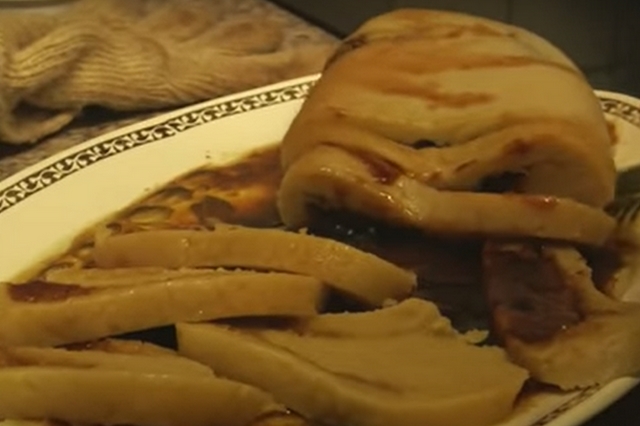 Pétrir le tout à la main, légèrement. Quand la pâte est faite, la mettre en boule et l'aplatir. Ajouter la cassonade. Fermer la pâte comme un chausson aux pommes. Mettre le gâteau dans un linge et le placer dans une casserole d'eau bouillante. Cuire doucement à petits bouillons. POD : Pot ou marmite.