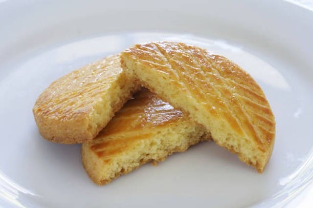150 g de sucre, 250 g de farine, 60 g de beurre, 1 oeuf, 1/2 paquet de levure, 1 ou 2 cuillerées de lait. Cuisson: 15 à 18 minutes.