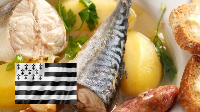 1 oignon haché, 1 kg de pommes de terre coupées en rondelles, 1 grondin, 1 rouget, 1 aiguillette, 1 colin, etc., en tronçons, 1 bouquet garni, 1 poignée d'oseille hachée. Tranches de pain rassis ou grillé. Cuisson: 1/4 d’heure.