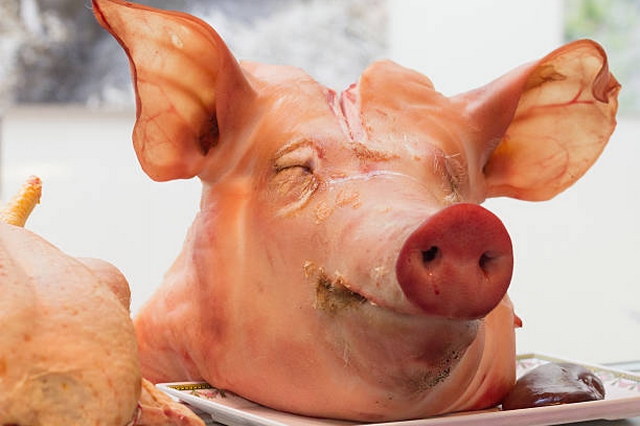 1/2 tête de cochon (chotenn) sortant du charnier, 1 verre d'eau, 1 gousse d'ail.