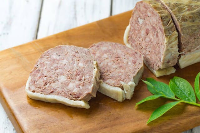 Bien hacher les viandes, y mélanger farine, ail, oignon, cognac. Malaxer afin de rendre le mélange très homogène. Assaisonner. Mettre en terrine. Cuire au bain-marie et au four.