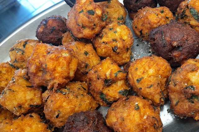 Pour 6 personnes: 400 g de cabillaud, 100 g de pommes de terre, 1 oeuf, 120 g de farine, 3 c à soupe de lait, 1 gousse d'ail, 2 échalotes, ciboulette, piment de Cayenne, huile de friture, sel, poivre.