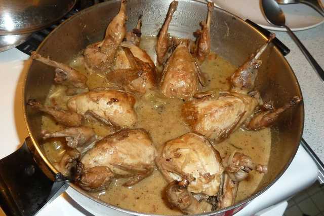 Cuisson: environ 15 minutes. Pour 2 personnes: 4 belles cailles, 1 c 1/2 à soupe de beurre, 100 g de crème fraîche, sel, poivre.
