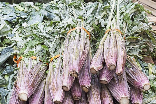 Faire cuire le cardon en le débarrassant de ses branches extérieures, dures et épineuses. Les branches tendres du coeur doivent être enlevées une à une, frottées avec un demi-citron pour les empêcher de noircir et coupées en tronçons de 5 cm. Plonger les morceaux au fur et à mesure dans de l'eau bouillante salée dans laquelle on aura préalablement dilué deux cuillerées à soupe bien remplies de farine et deux cuillerées d'huile d'arachide. Couvrir la casserole et laisser cuire pendant deux heures. Egoutter les cardons, les beurrer à couvert sur feu très doux 10 mn. Ajouter un bol de sauce béchamel. Laisser mijoter quelques minutes. Servir avec un rôti de veau ou de porc, des côtes de mouton ou une épaule roulée.