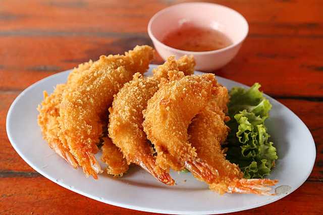 Pour 4 personnes: 12 grosses crevettes, 1 citron, 2 pincées de curry, sel, poivre, 1 bain de friture. Pour la pâte à beignets: 100 g de farine, 30 g de maïzena, 1 échalote, 1 oeuf, 15 cl de bière, 1 c à soupe d'huile, sel, poivre. Pour la sauce et l' accompagnement: 1/2 radis noir, 6 c à soupe de nuoc-mam, 2 gousses d'ail, 2 pincées de poudre de piment, 1 c à soupe de sucre, 1 citron vert.