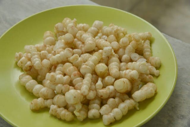 500 g de crosnes, 50 g de beurre, 1 c à café de farine, 2 dl de bouillon, sel, poivre, 1 clou de girofle, 5 ou 6 râpures de muscade, 1 c de persil haché.