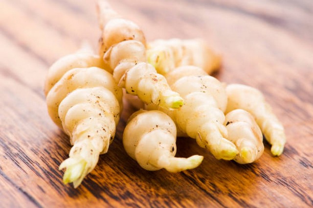 Faire un roux blond. Mouillez de bouillon et laisser cuire 20 mn avec le clou de girofle et une pointe de muscade. Ajoutez les crosnes (blanchis à l'eau salée) à sauce avec une noix de beurre, sel, poivre, persil haché.