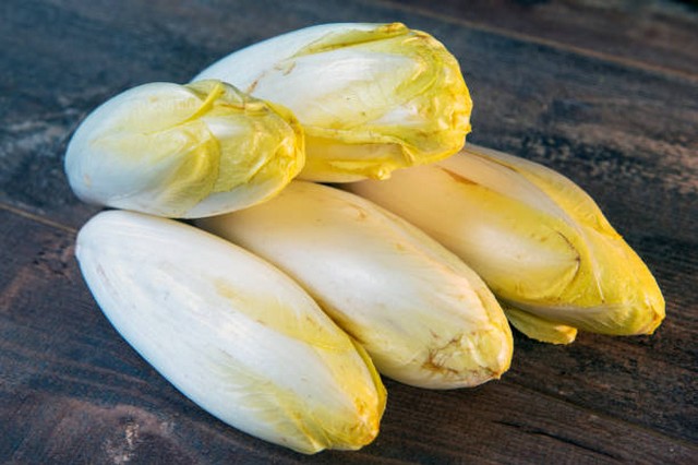 Faire une pâte à beignets épaisse avec de la farine, de la levure chimique, du paprika, de l'huile d'olive, du sel, du blanc d'oeuf en neige. Tremper des morceaux d'endives crues dans cette pâte. Frire dans l'huile à la poêle.