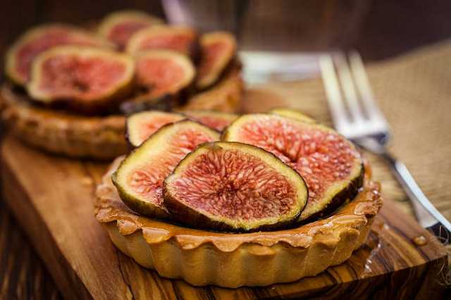 Pour 4 personnes. La pâte: 200 g de farine, 100 g de beurre, 50 g de sucre en poudre, 1 sachet de sucre vanillé, 1 jaune d'oeuf, 1 petite pincée de sel. La garniture: 6 figues, 4 c à soupe de miel, 20 g de beurre.