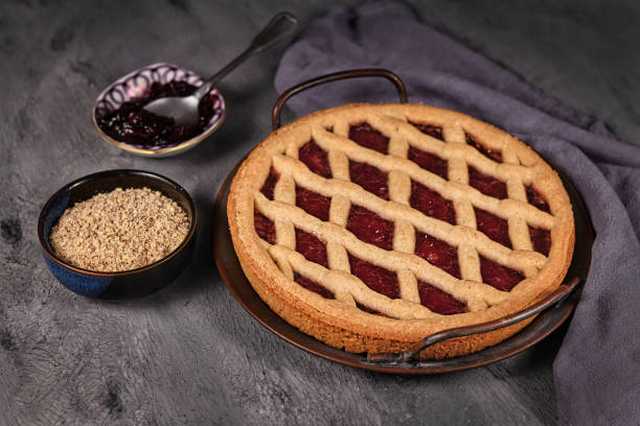 Pour 6 personnes: 100 g de farine, 100 g de sucre, 100 g de beurre, 100 g de noisettes décortiquées, 3 jaunes d'oeufs, 500 g de confiture de framboises, 20 g de beurre pour le moule.