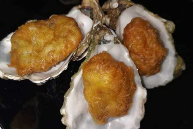 Pour 24 huîtres. Ouvrir les huîtres, recueillir l'eau. Préparer la pâte avec 1 oeuf, 4 c à soupe de farine, 4 c à soupe de lait, l'eau des huîtres, sel, poivre. Plonger les huîtres dans la pâte et les faire frire à l'huile. Garnir chaque coquille d'un beignet.
