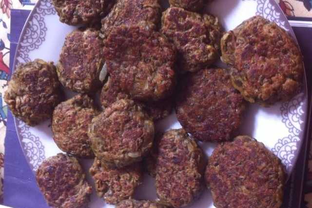 Pour 4 personnes: 2 tasses de lentilles cuites et réduites en purée, 2 échalotes finement hachées, sauce soja, sel marin quelques olives noires dénoyautées et hachées (facultatif), 3 ou 4 c à soupe de farine de froment légèrement tamisée, chapelure.