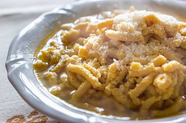 Mélanger chapelure, oeufs, parmesan, farine, moelle de boeuf, sel, muscade de façon à obtenir un appareil ferme mais souple. Passer cet appareil à travers une écumoire, enlever les passatelli au fur et à mesure et les cuire dans le bouillon, pendant 5 mn, puis les servir dans le bouillon avec du parmesan râpé.