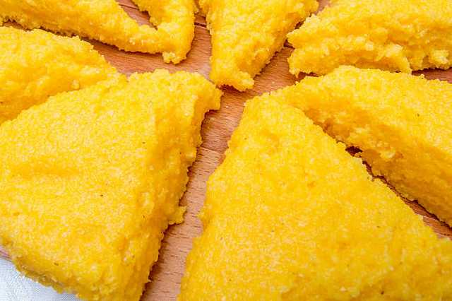 Verser dans un litre d'eau bouillante salée 250 g de farine de maïs, en pluie, et tourner durant l'épaississement. Eplucher une livre d'oignons, les faire dorer à la poêle. Faire pocher des oeufs, très mollets. Dans un plat huilé, verser le maïs et l'étaler. Verser par-dessus les oignons très gras. Poser enfin les oeufs pochés. Passer au four cinq minutes.