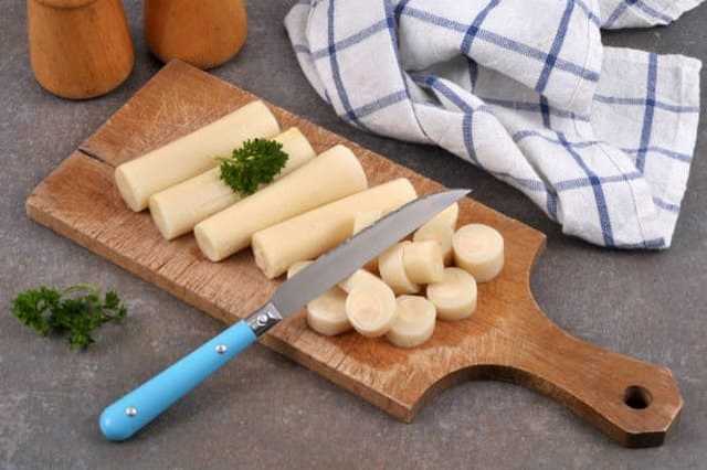 1 boîte de coeur de palmier pour 6 personnes. Ouvrir une boîte de coeur de palmier et réserver le jus. Dans une poêle profonde, faire revenir de l'oignon, 100 g de crevettes bouquet coupées en petits morceaux, 100 g de porc maigre, poivrer, saler avec une cuillère à soupe de nuoc mam. Ajouter le coeur de palmier débité en lamelles. Cuire 5 mn. Avant de servir, casser 2 oeufs que vous mêlez rapidement. Verser dans un plat couvrir de persil haché ou de feuilles de coriandre.