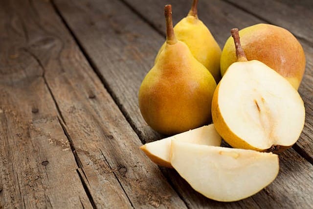 Pour 4 personnes: 4 belles poires, 4 cuillerées de confiture d'abricots, 4 macarons.