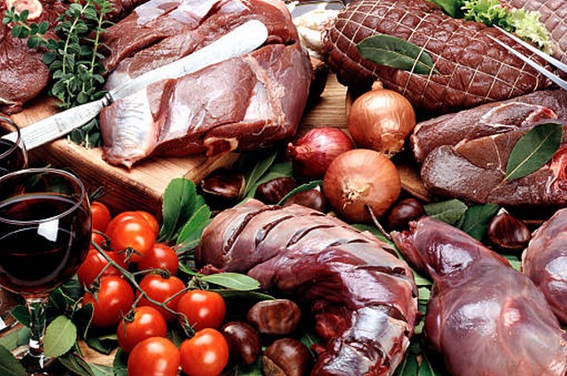 Pour 6 personnes: 1,8 kg de cuissot de marcassin (ou échine) coupé en morceaux, 1 bouteille de vin rouge, 2 carottes, 2 oignons, 1 branche de persil, 1 branche de thym, 1 feuille de laurier, 1 douzaine de baies de genièvre, 1 dizaine de grains de poivre, 1 branche de céleri, 2 échalotes, 1 brin de romarin, 200 g de poitrine salée, 4 gousses d'ail, 1 c à soupe de farine, 20 g de beurre, 2 c à soupe d'huile d'olive, sel.