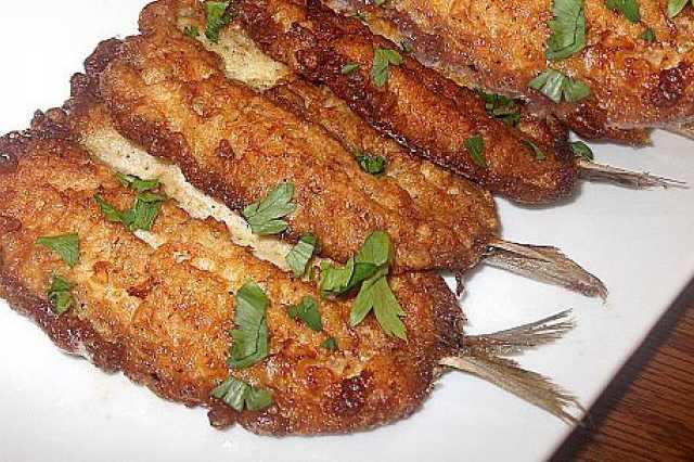 Nettoyez 12 sardines en les débarrassant de la peau et des arêtes; aplatissez-les en laissant les deux moitiés attachées. Trempez-les dans une pâte à beignets et faites-les frire à grande friture. Préparez une mayonnaise, ajoutez-lui le jus de 1 citron, 1 capsule de safran, 200 g d'oseille fondue au beurre et hachée, 2 c à soupe de persil et cerfeuil hachés. Servez les sardines avec la sauce.