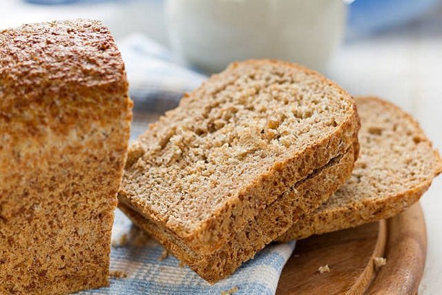 1kg de farine complète, 0,7L d’eau tiède, levure de boulanger ou levain fait maison, sel.