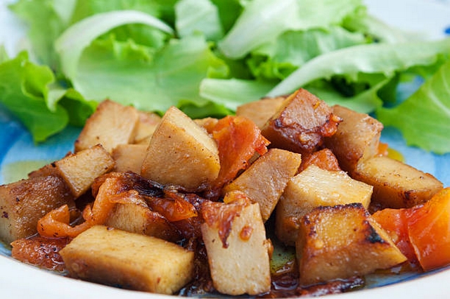 Chauffer l’huile dans une cocotte et y rissoler successivement l’oignon, les carottes et le fenouil. Dans une poêle, rissoler aussi les graines de fenouil, puis les morceaux de seitan. Mélanger le seitan aux légumes, verser le bouillon, et assaisonner de sauce de soja. Laisser mijoter 30 min.