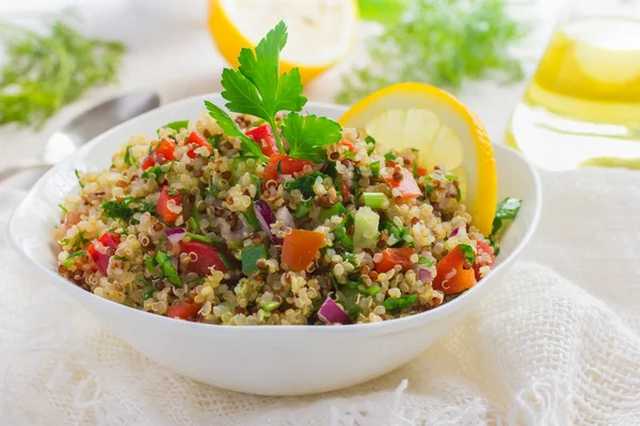 200g de quinoa, 2 carottes, 1 oignon, 1 poivron rouge, vinaigrette à l’huile d’olive, ciboulette, 2 épis frais de maïs doux.
