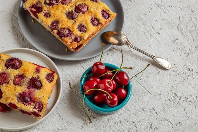 Pain rassis, lait végétal, sucre, des épices, cerises.