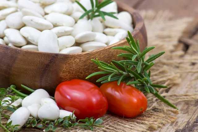 1,5kg de haricots cocos frais, 500g de tomates, 2 gousses d’ail, 2 pincées de thym effeuillé, 1 bouquet garni, 8 brins de persil, 2 càs d’huile d’olive, 2 càt de sucre, sel et poivre.