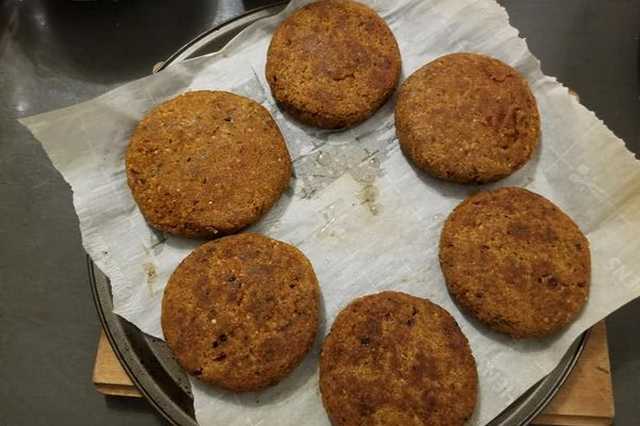 100g de millet, 250mL de bouillon de légumes, 1 carotte râpée, 1 pomme de terre râpée, 1 échalote hachée, 50g de graines de sésame, sel, poivre, gomasio, chapelure, huile d’arachide