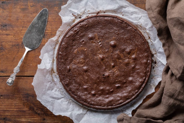 100g de chocolat noir 100% végétal ou 100g de poudre de cacao ou 2 citrons ou 2 oranges, des raisins secs, margarine végétale, 4 verres de farine, 2 verres de sucre en poudre, 1 sachet de levure, du lait de soja ou de l’eau.