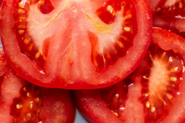 Comment avoir de jolies tranches de tomates comme au restaurant ? Tranchées horizontalement (ou transversalement), les tomates garderont un peu de tenue dans les salades. Ne pas oublier d'ôter le coeur blanc, qui se trouve sous la collerette verte.