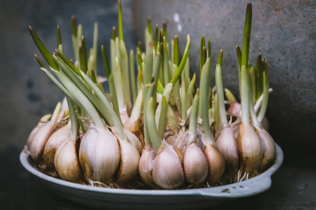 Les gousses d'ail, dès lors qu'elles ont germé, perdent tout leur goût et ne sont plus utilisables pour cuisiner. Le mieux est de les mettre en terre dans une jardinière ou un pot. Les tiges qui pousseront quelques semaines après sont délicieuses telles quelles, dans des omelettes, de la salade, des sauces, etc.