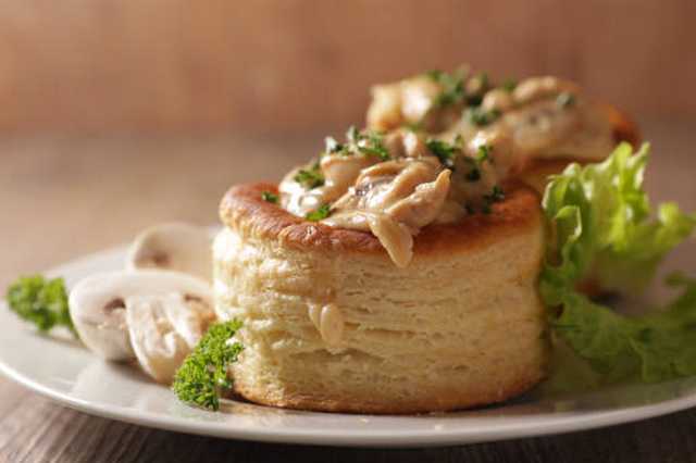 Couper les champignons en petits morceaux et faites-les revenir dans le beurre. Ajouter 1/2 verre de vin blanc, le persil, saler et poivrer. Ajouter le mascarpone, mélanger le tout et remplir les vol-au-vent. Passer à four chaud pendant quelques minutes avant de servir.